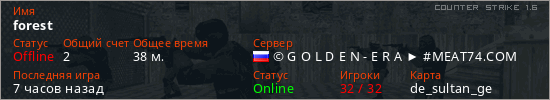 Последний раз был в сети 6 часов назад Игрок с таким ником замечен на 36 серверах