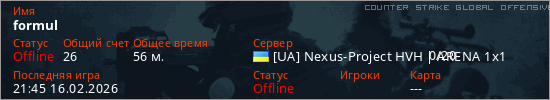 Играет на Counter Strike Global Offensive сервере. Страна: УкраинаПервый раз замечен 18:27 24.01.2026