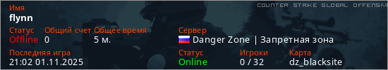 Играет на Counter Strike Global Offensive сервере. Страна: РоссияПервый раз замечен 21:00 01.11.2025