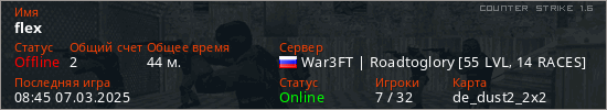 Последний раз был в сети 08:45 07.03.2025 Игрок с таким ником замечен на 30 серверах