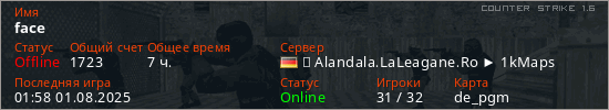 Последний раз был в сети 01:58 01.08.2025 Игрок с таким ником замечен на 28 серверах