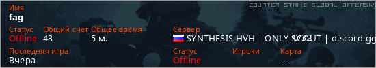 Играет на Counter Strike Global Offensive сервере. Страна: РоссияПервый раз замечен 19:29 21.04.2026