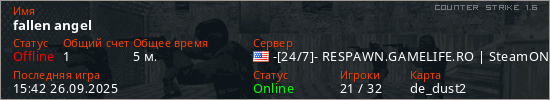 Играет на Counter Strike 1.6 сервере. Страна: СШАПервый раз замечен 15:40 26.09.2025