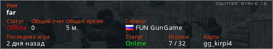 Последний раз был в сети 2 дня назад Игрок с таким ником замечен на 15 серверах