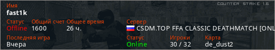 Последний раз был в сети Вчера Игрок с таким ником замечен на 16 серверах