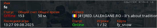 Играет на Counter Strike 1.6 сервере. Страна: РумынияПервый раз замечен 18:04 31.07.2025