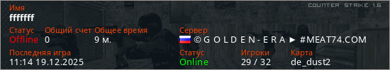 Играет на Counter Strike 1.6 сервере. Страна: РоссияПервый раз замечен 22:16 17.10.2023