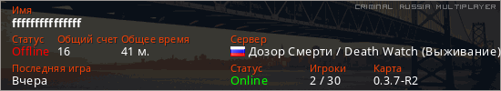 Последний раз был в сети Вчера Игрок с таким ником замечен на 3 серверах