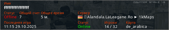 Последний раз был в сети 11:15 29.10.2025 Игрок с таким ником замечен на 7 серверах