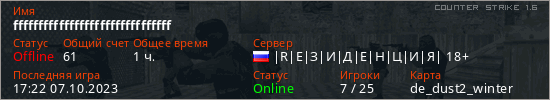 Последний раз был в сети 17:22 07.10.2023 Игрок с таким ником замечен на 14 серверах