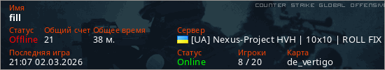 Играет на Counter Strike Global Offensive сервере. Страна: УкраинаПервый раз замечен 17:13 26.02.2026
