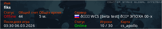 Играет на Counter Strike Global Offensive сервере. Страна: РоссияПервый раз замечен 03:14 06.03.2026