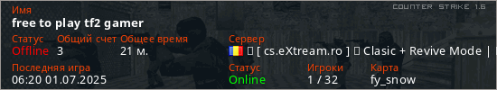 Играет на Counter Strike 1.6 сервере. Страна: РумынияПервый раз замечен 05:12 27.06.2025