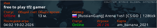Играет на Counter Strike Global Offensive сервере. Страна: РоссияПервый раз замечен 16:42 07.02.2026