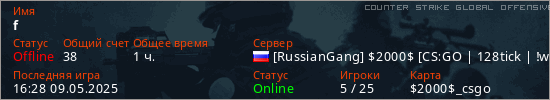 Играет на Counter Strike Global Offensive сервере. Страна: РоссияПервый раз замечен 19:31 19.09.2023