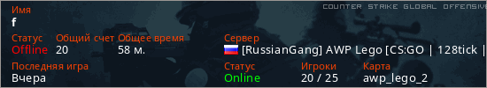 Играет на Counter Strike Global Offensive сервере. Страна: РоссияПервый раз замечен 16:06 29.08.2023