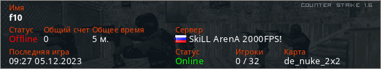 Играет на Counter Strike 1.6 сервере. Страна: РоссияПервый раз замечен 09:25 05.12.2023