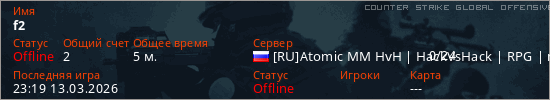 Играет на Counter Strike Global Offensive сервере. Страна: РоссияПервый раз замечен 23:02 13.03.2026
