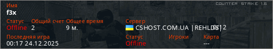 Играет на Counter Strike 1.6 сервере. Страна: УкраинаПервый раз замечен 00:06 24.12.2025