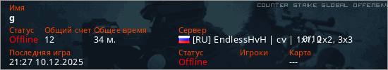 Играет на Counter Strike Global Offensive сервере. Страна: РоссияПервый раз замечен 16:59 08.12.2025