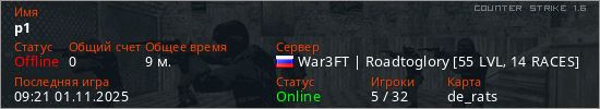 Последний раз был в сети 09:21 01.11.2025 Игрок с таким ником замечен на 14 серверах