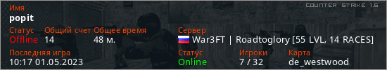 Играет на Counter Strike 1.6 сервере. Страна: РоссияПервый раз замечен 15:59 08.07.2022