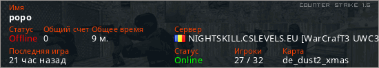 Последний раз был в сети 17 часов назад Игрок с таким ником замечен на 28 серверах
