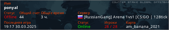 Играет на Counter Strike Global Offensive сервере. Страна: РоссияПервый раз замечен 21:35 29.03.2025