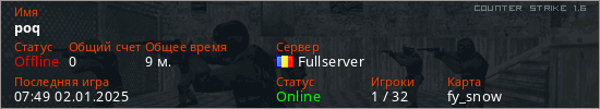 Играет на Counter Strike 1.6 сервере. Страна: РумынияПервый раз замечен 06:55 02.01.2025