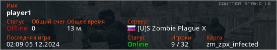 Играет на Counter Strike 1.6 сервере. Страна: РоссияПервый раз замечен 15:23 31.10.2024