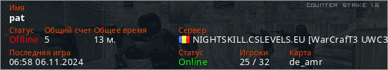 Играет на Counter Strike 1.6 сервере. Страна: РумынияПервый раз замечен 03:54 02.10.2024