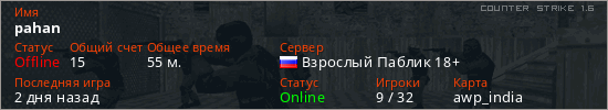 Последний раз был в сети 2 дня назад Игрок с таким ником замечен на 32 серверах