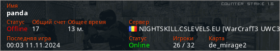 Играет на Counter Strike 1.6 сервере. Страна: РумынияПервый раз замечен 03:04 03.10.2024