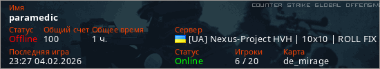 Играет на Counter Strike Global Offensive сервере. Страна: УкраинаПервый раз замечен 17:31 31.01.2026