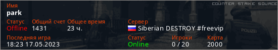 Играет на Counter Strike Source сервере. Страна: РоссияПервый раз замечен 17:53 28.01.2023