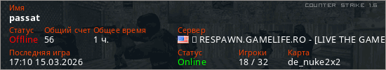 Играет на Counter Strike 1.6 сервере. Страна: СШАПервый раз замечен 12:50 16.02.2026