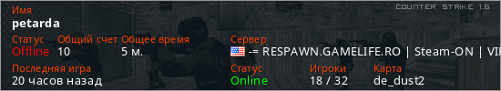 Последний раз был в сети 15 часов назад Игрок с таким ником замечен на 10 серверах