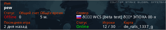 Играет на Counter Strike Global Offensive сервере. Страна: РоссияПервый раз замечен 23:35 06.03.2026