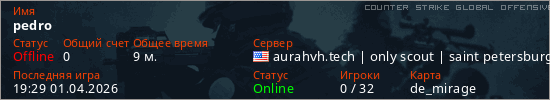 Играет на Counter Strike Global Offensive сервере. Страна: СШАПервый раз замечен 18:26 31.03.2026