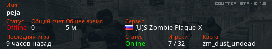 Играет на Counter Strike 1.6 сервере. Страна: РоссияПервый раз замечен 19:50 03.03.2026