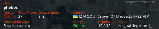 Играет на Counter Strike 1.6 сервере. Страна: УкраинаПервый раз замечен 22:24 20.10.2025