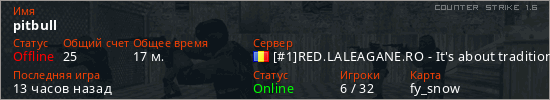 Играет на Counter Strike 1.6 сервере. Страна: РумынияПервый раз замечен 14:20 28.12.2025