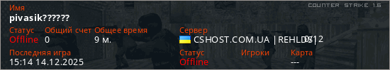 Играет на Counter Strike 1.6 сервере. Страна: УкраинаПервый раз замечен 14:39 14.12.2025