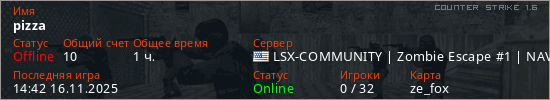 Играет на Counter Strike 1.6 сервере. Страна: СШАПервый раз замечен 18:39 13.09.2025