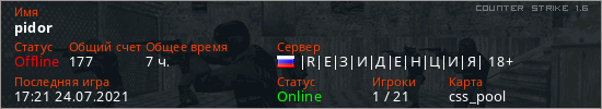 Последний раз был в сети 17:21 24.07.2021 Игрок с таким ником замечен на 49 серверах
