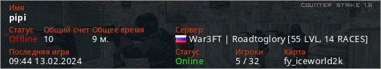Играет на Counter Strike 1.6 сервере. Страна: РоссияПервый раз замечен 09:31 06.02.2024