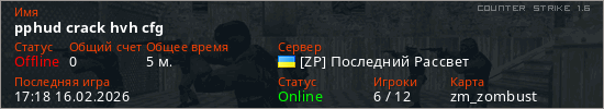 Играет на Counter Strike 1.6 сервере. Страна: УкраинаПервый раз замечен 17:01 16.02.2026