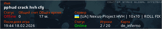 Играет на Counter Strike Global Offensive сервере. Страна: УкраинаПервый раз замечен 18:45 15.02.2026
