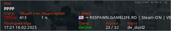 Играет на Counter Strike 1.6 сервере. Страна: СШАПервый раз замечен 16:29 16.02.2025