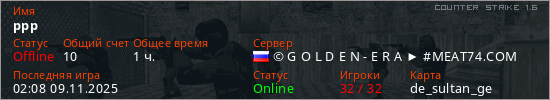 Играет на Counter Strike 1.6 сервере. Страна: РоссияПервый раз замечен 10:04 17.02.2023